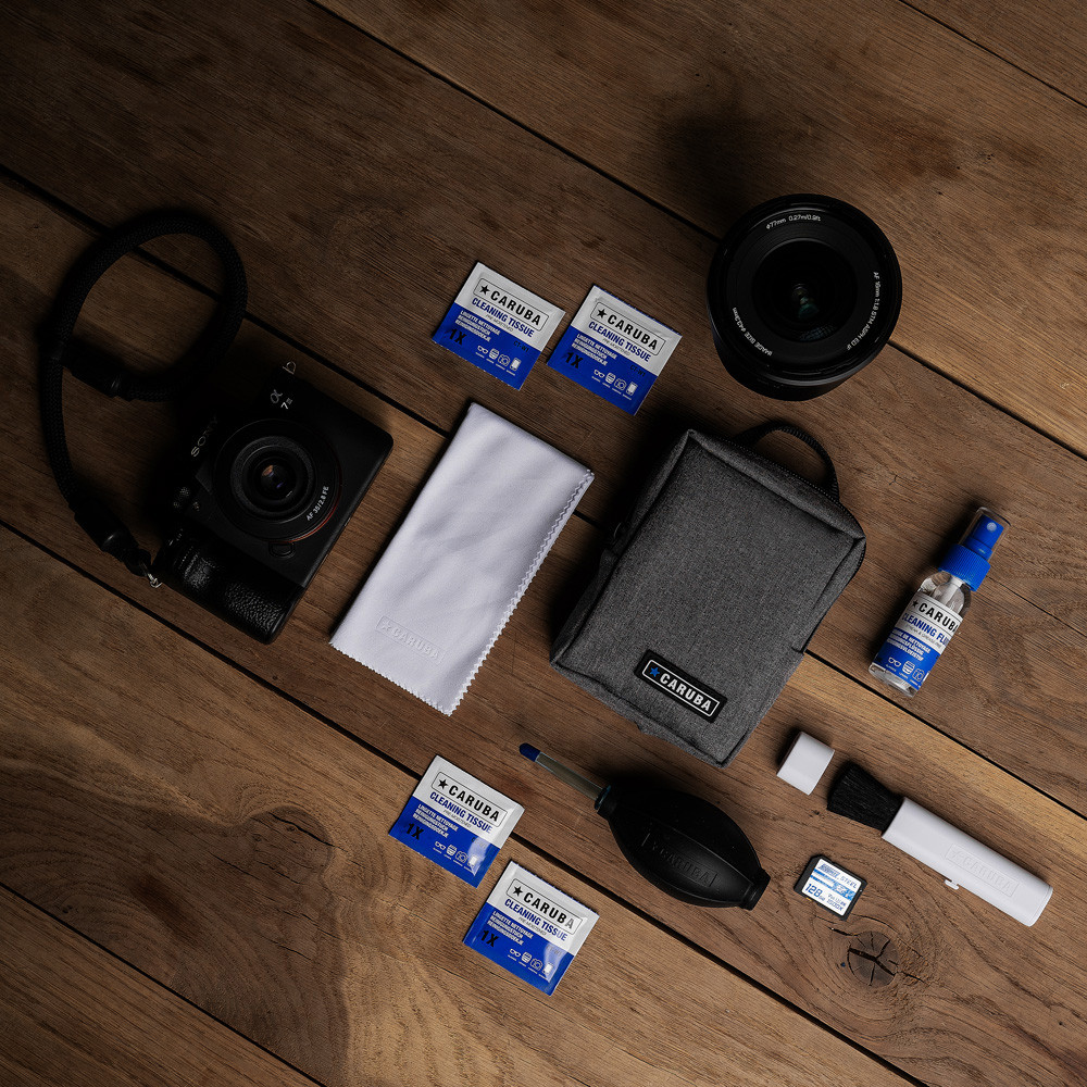 1x lencsefúvó1 x behúzható lencsekefe20 x előnedvesített törlőkendő1 x tisztító spray (alkoholmentes 30 ml)1 x mikroszálas kendő