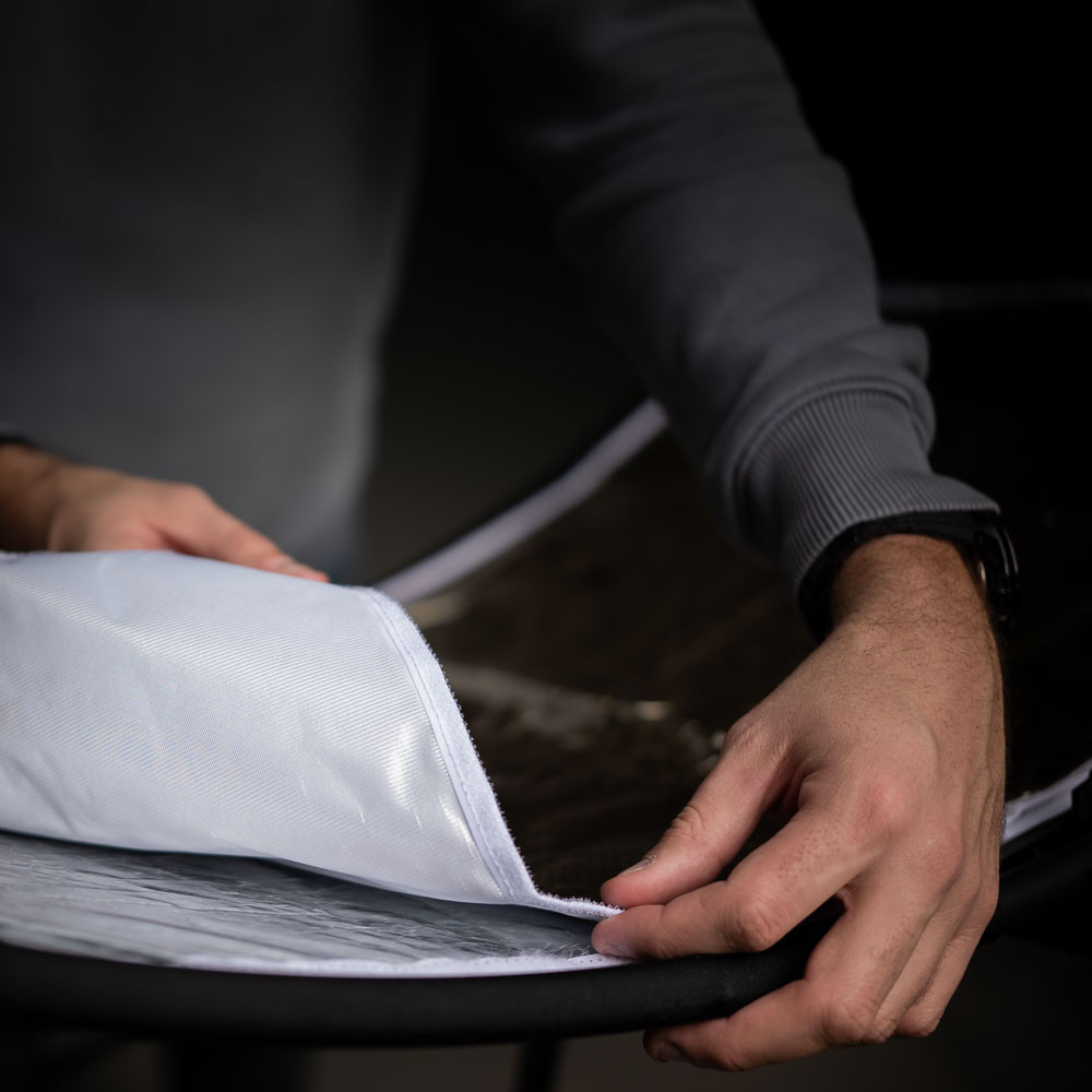 U-alakú Ideális portréfotózáshozMérete 110 x 60 cmKönnyen használhatóTöbbirányú beállításEzüst és fekete alap és 2 az 1-ben arany/fehér huzatot tartalmaz