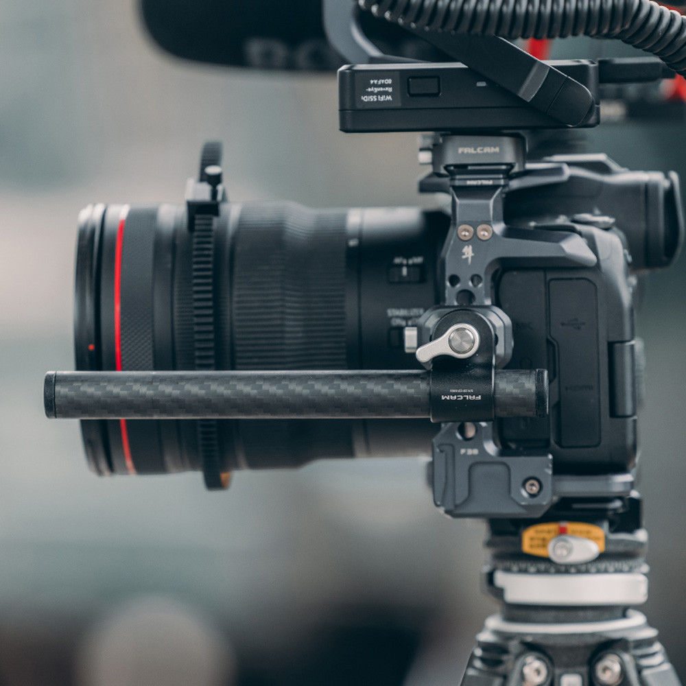 Clamp the Falcam 15mm Rod Rail to your 15mm rod creating a platform for attaching accessories.