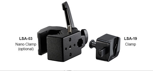 • A Godox LSA-03 nanobilincs alkalmas könnyű kiegészítők, például gobók, reflektorok vagy hátterek rögzítésére a lámpaállványra. A bilincs 5/8"-os csatlakozással rendelkezik. Húzza meg erősen a bilincset a nagy fogantyúval.