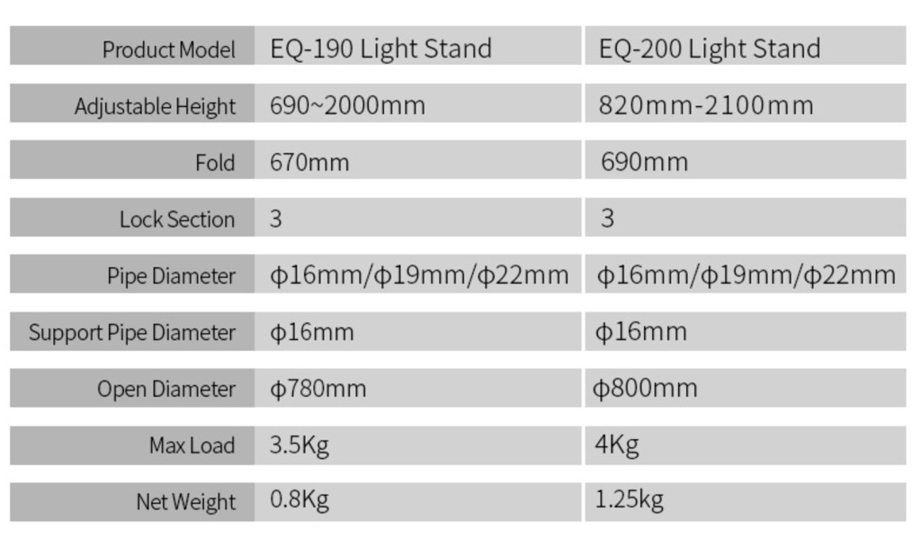 Praktikus kisméretű állvány, mindössze 1 kg. Kis szállítási mérete (66,5 cm) ellenére nagy stabilitás érhető el.