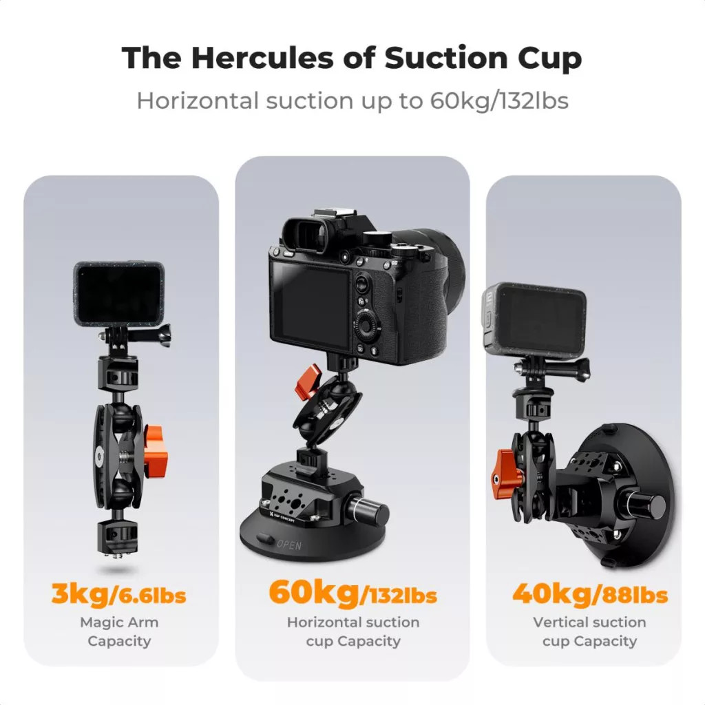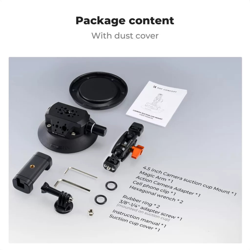 K&F Concept MS45 bővíthető tapadókorong, 11,4cm-es tapadófelület, magic arm, telefon, Gopro adapter (KF-31-100)