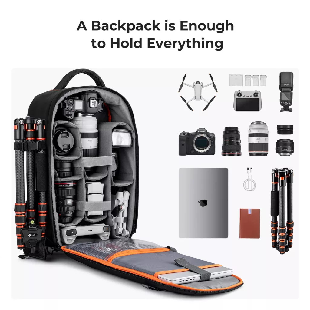 K&F Concept Nature Wander 05, 18L, fotós hátizsák, vízálló, esőhuzat, 15,6" laptoptartó, fekete (KF-13-205)