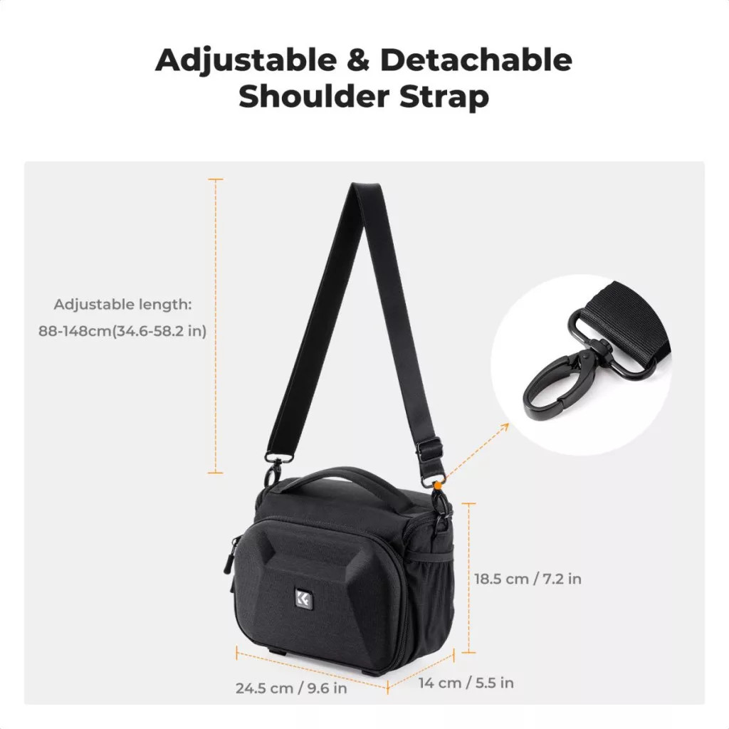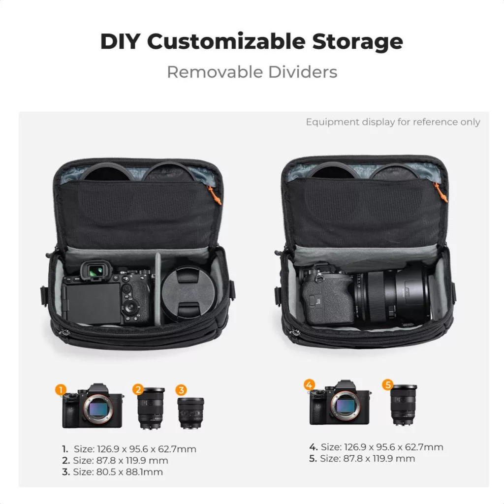 A K&F Concept sling táska tökéletes megoldás azok számára, akik fontosnak tartják a gyors hozzáférést, a biztonságos tárolást és a kényelmes hordozást. A vízálló kialakítás és a párnázott belső tér megóvja felszerelését, miközben a praktikus kialakítás lehetővé teszi, hogy mindig készen álljon a fotózásra.