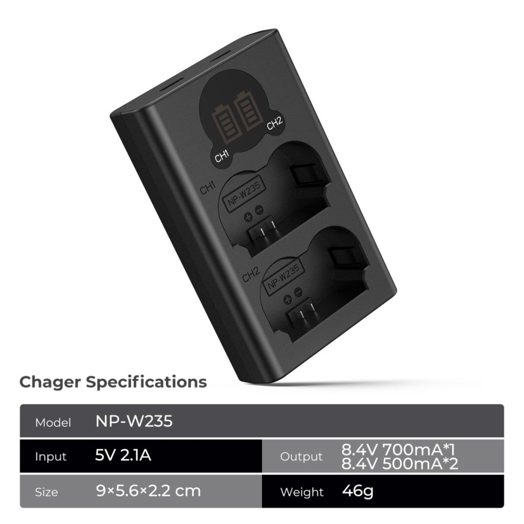 K&F Concept hordozható dupla NP-W235 akkumulátor töltő, LCD, USB-C, 2db NP-W235 akkumulátorhoz (KF-28-0019V1)