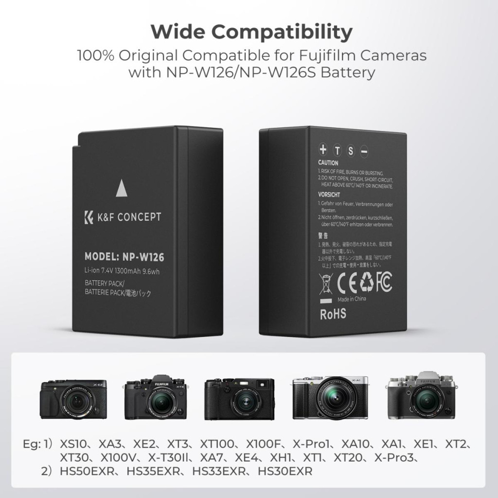 Szabványos kompatibilitás: Teljesen dekódolt, kompatibilis az LP-E8 modellű akkumulátorokat használó fényképezőgépekkel, és támogatja az eredeti töltőket, mint például a Fuji XS10, XT30, XT20, XE4, X100V, A5 és más fényképezőgépek.