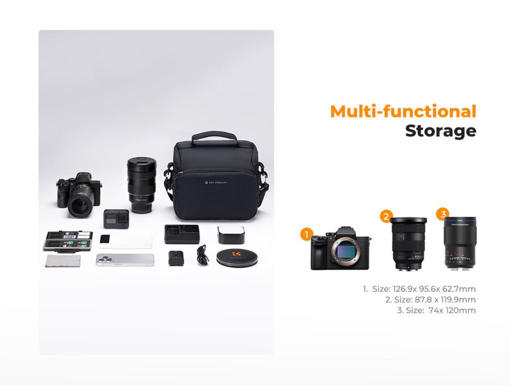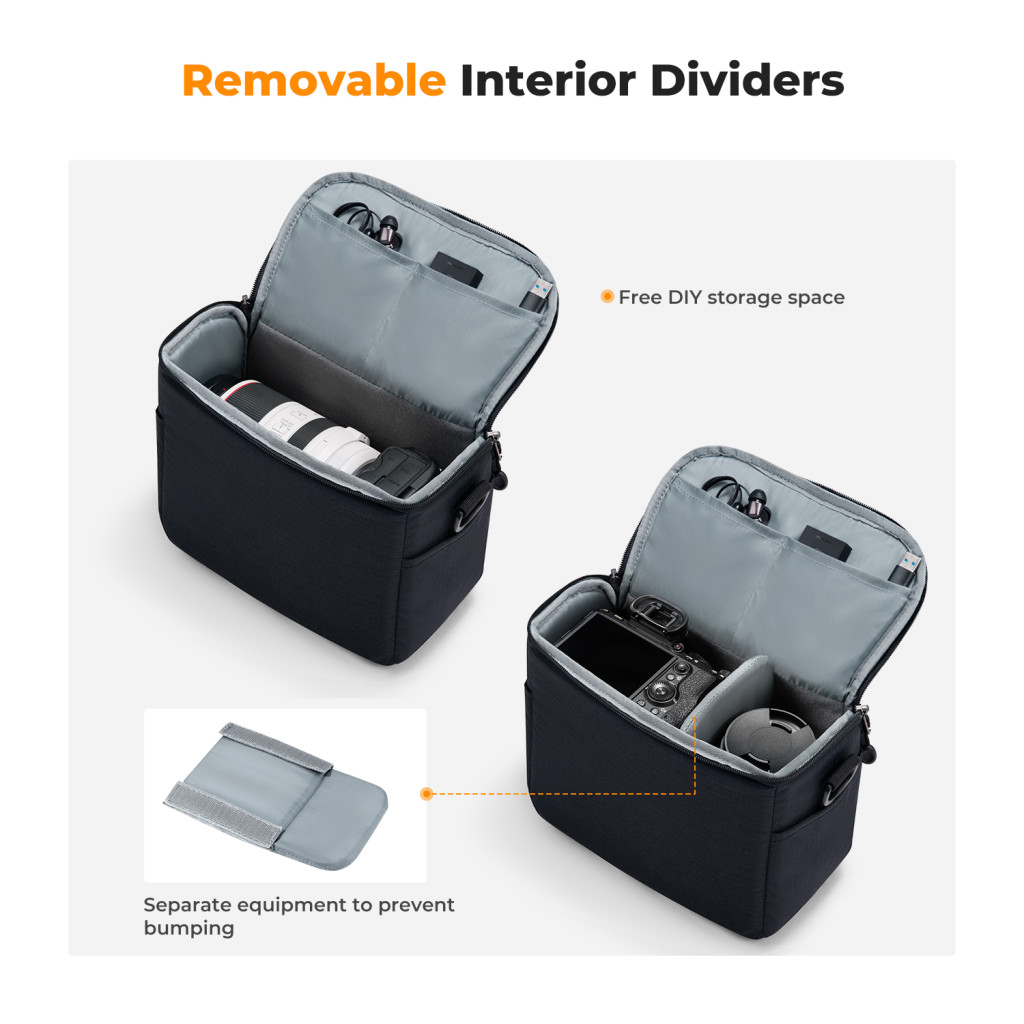 A K&F Concept oldaltáska egy praktikus és stílusos megoldás a fotós felszerelések szállítására. A 7 literes kapacitás elegendő helyet biztosít a fényképezőgépnek és tartozékoknak. A vízlepergető anyag védi a felszerelést az időjárás viszontagságaitól.