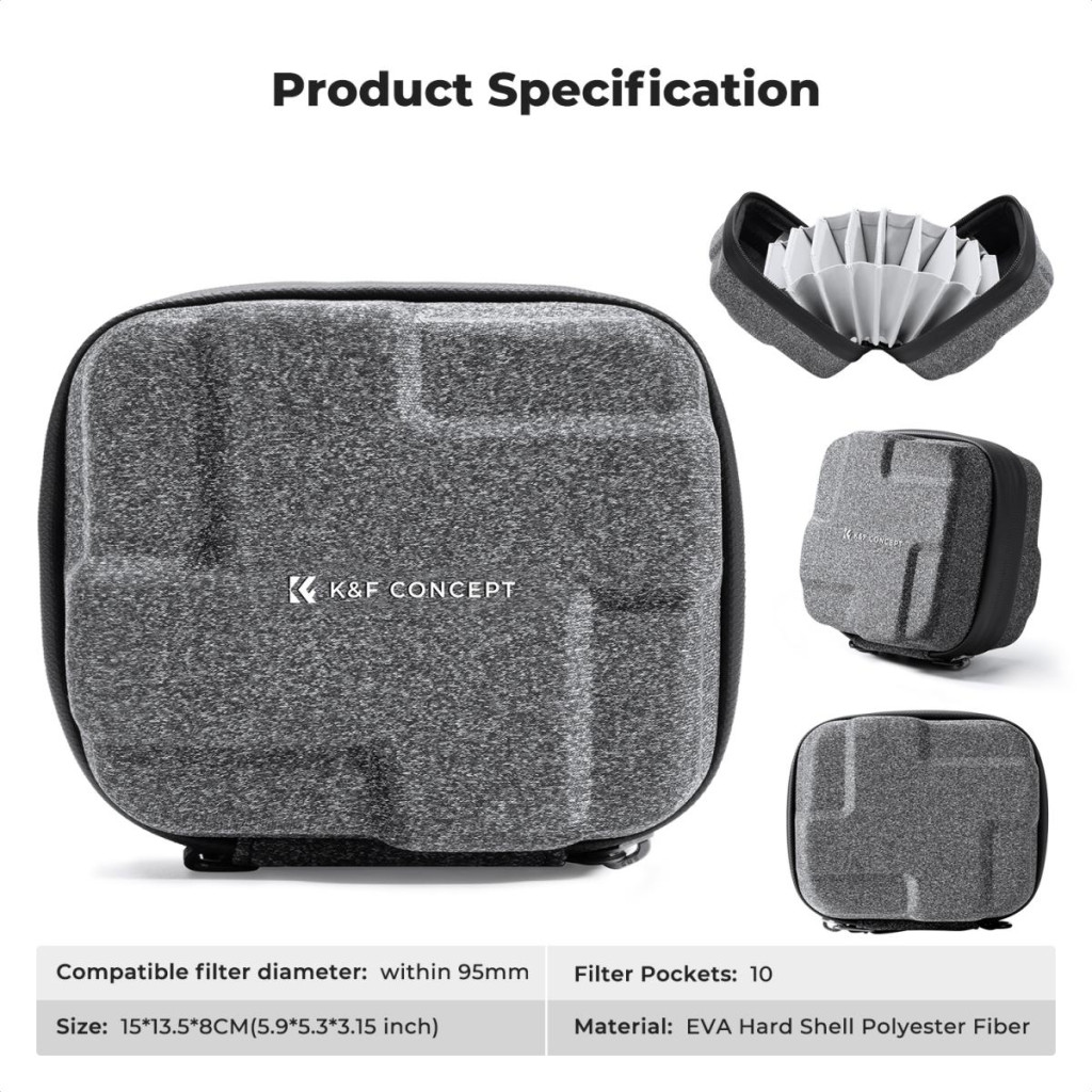 A K&F Concept szűrőtartó tok ideális választás mindazok számára, akik szeretnék biztonságosan tárolni és szállítani szűrőiket, miközben megóvják azokat a sérülésektől és szennyeződésektől.