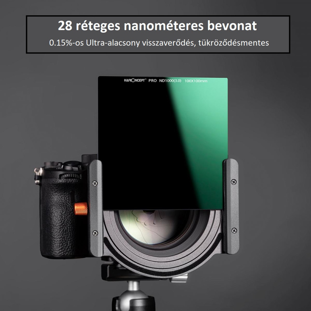 - ND1000 négyzet alakú szűrő, mérete: 100x100 mm, Kiválóan alkalmazható DSLR fényképezőgépekhez.