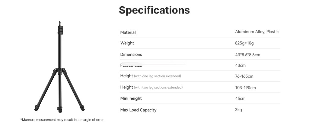 Anyaga: AluminumMax magasság: 190cmMin magasság: 43cmSzállítási hossz: 43cmCsőátmérők: 26 mmSúly: 825gMax terhelhetőség: 3kg