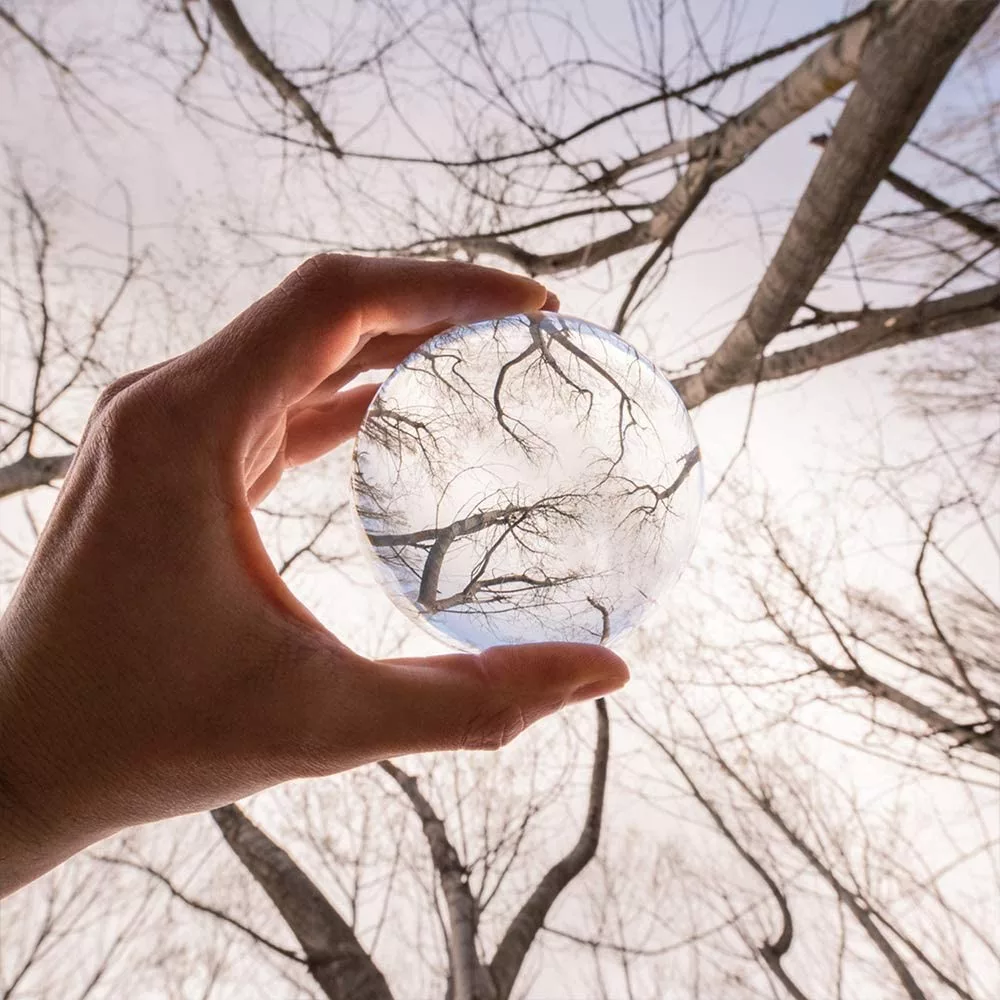 Tiszta, átlátszó üveggömb, tájképek készítéséhez