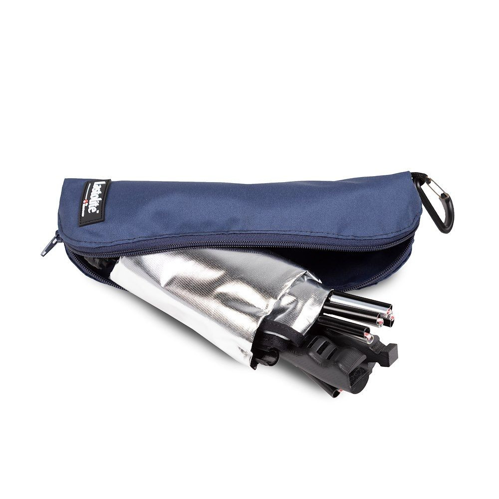 Az okosan megtervezett RapidExoframe ™ konstrukció sok kis részre szedhető szét, így egy 6,5 x 27 x 6,5 cm-es (2,5 ''x 10,5'' x 2,5 '') táskába elpakolható, mely mindössze 335 g súlyú (derítőlap és tok egyben).