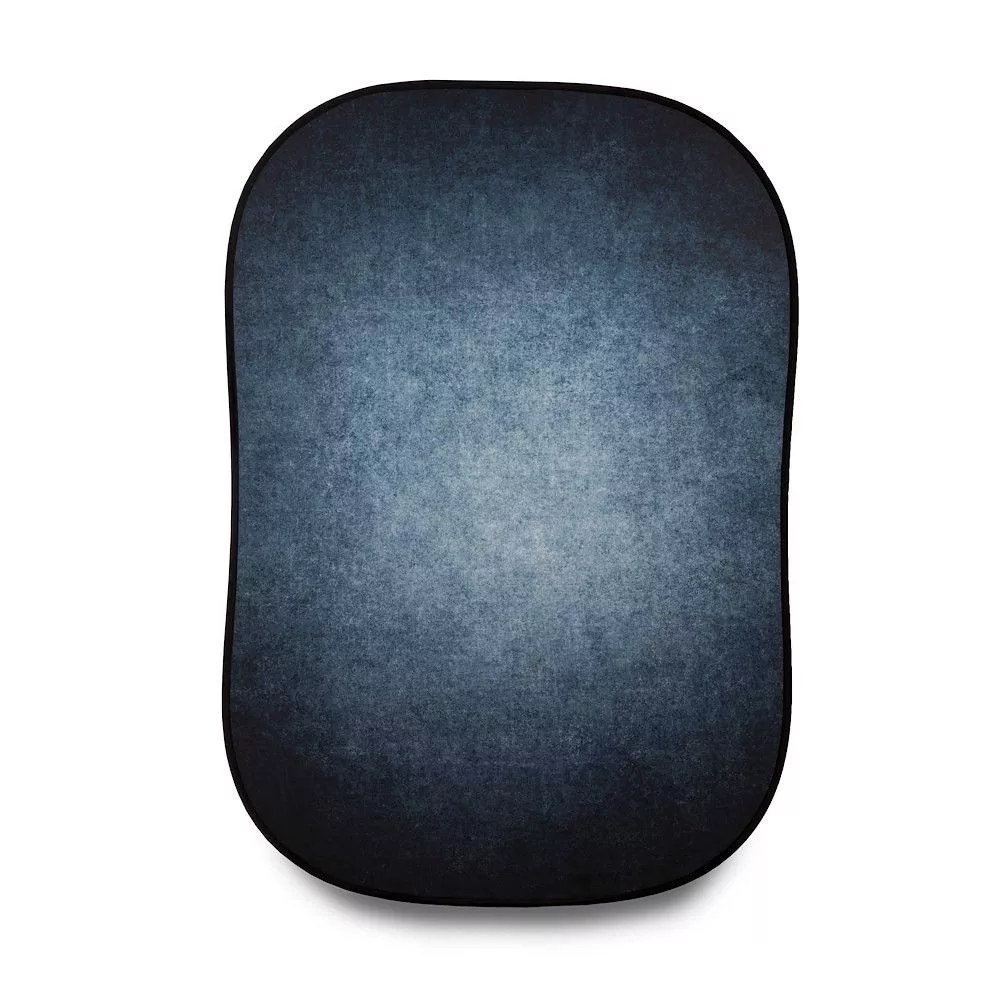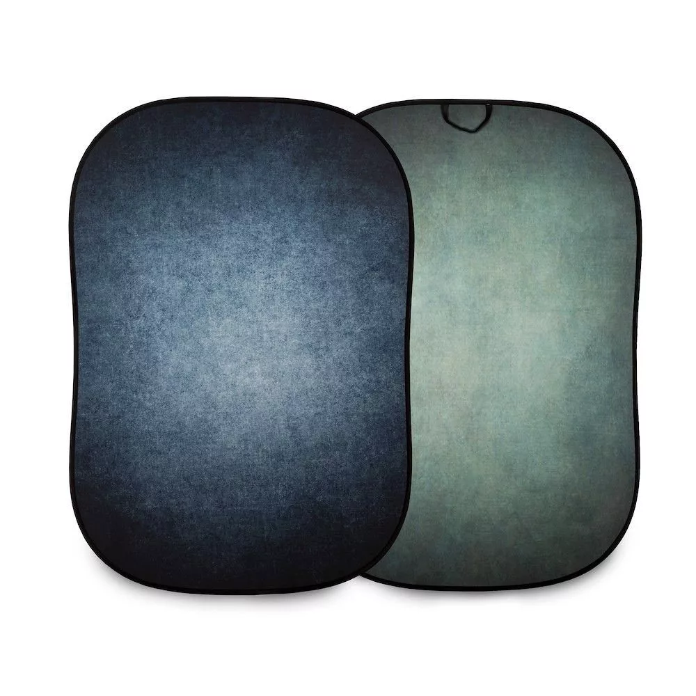 A tinta/zsálya Vintage összehajtható háttér kétoldalas. Az egyik oldala kézzel festett stílusú textúrával rendelkezik, átmenetes mély és világosabb kék tónusokkal, erős vignettálással. Színpalettája a farmert, mély vizet idézik. A másik oldala ezen színpalettát jól kiegészítő földes zöld színű, viharvert határú textúrával, finom patinaszerű kontrasztokkal.