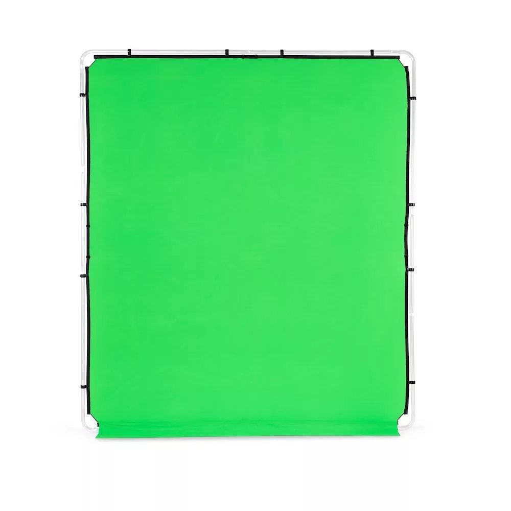 Chroma Key Zöld színű huzat az EzyFrame Háttér 2x2,3m háttérhez. Az EzyFrame 2 x 2,3 m (6,5 'x 7,5') nagy méretű, összecsukható háttér, amely sokkal nagyobb felvételi felületet kínál, mint a korábban csak 1,5 x 2,1 m (5 'x 7') méretben kapható, összecsukható 'pop-up' típusú hátterek. Az extra szélesség és magasság a négyzetesebb alakú formátummal kombinálva lényegesen megnöveli a felületet, lehetővé téve a fotós számára, hogy több témát jelenítsen meg vagy kellékeket használjon. Ideális családi portrékhoz, mozgásos, aktívabb pózokhoz, divat- és reklám fotókhoz. A huzatok külön is megvásárolhatóak, így egy keret többféle textúrával, színnel is használható. Az EzyFrame háttér huzat alsó szélén egy kis 15 cm-es (6”) szoknya található, amely elfedi az alumínium keretet, így a hátteret a választott padlófelülettel kombinálhatjuk a teljes alakos képek készítésekor.
