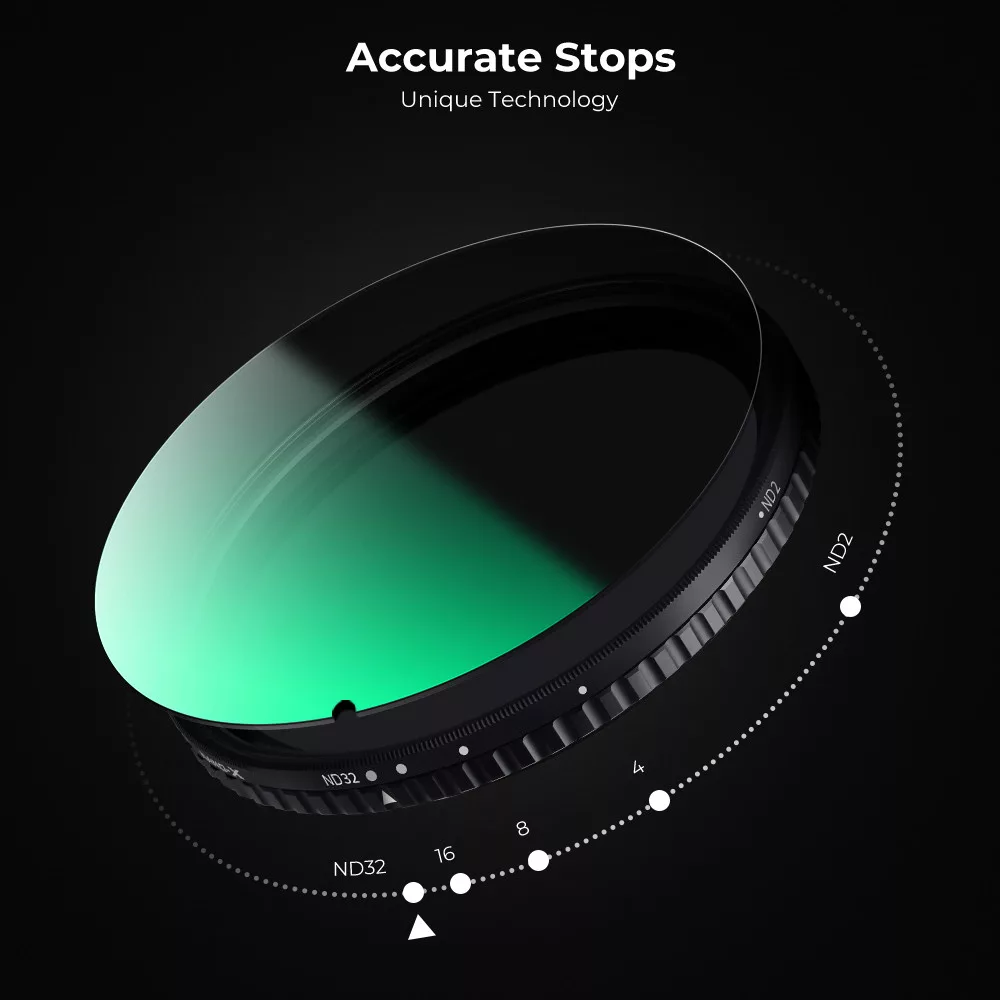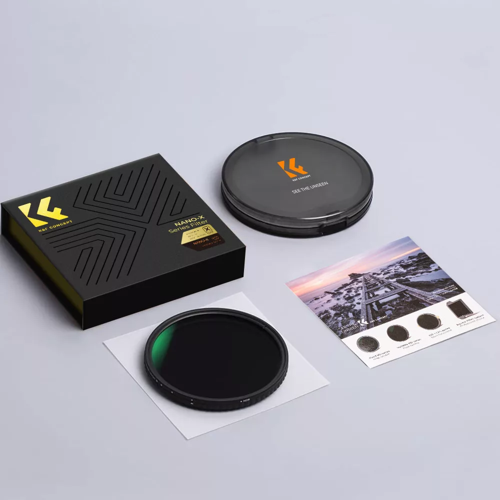 - Prémium minőség: A szűrő ND2 és ND32 között állítható, így rugalmasan szabályozható az objektívbe jutó fény mennyisége, lehetővé téve a különböző expozíciós technikák alkalmazását. A K&F Concept a technológiájának köszönhetően búcsút inthet az "X" keresztnek a képeken, mely gyakran előforduló probléma az olcsóbb szűrők használatakor.