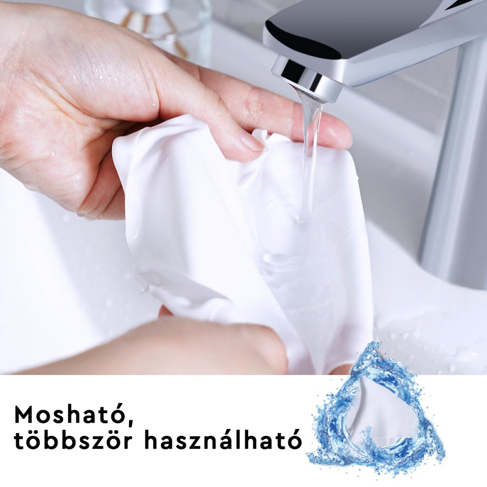 - 150*150 mm-es méretű tisztítókendő, finom textúra, puha és mosható, újrahasznosítható