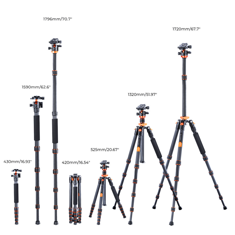 K&F Concept D255C4+BH-28L karbon állvány + monopod + telefon adapter, fekete-narancs (KF-09-093V2)