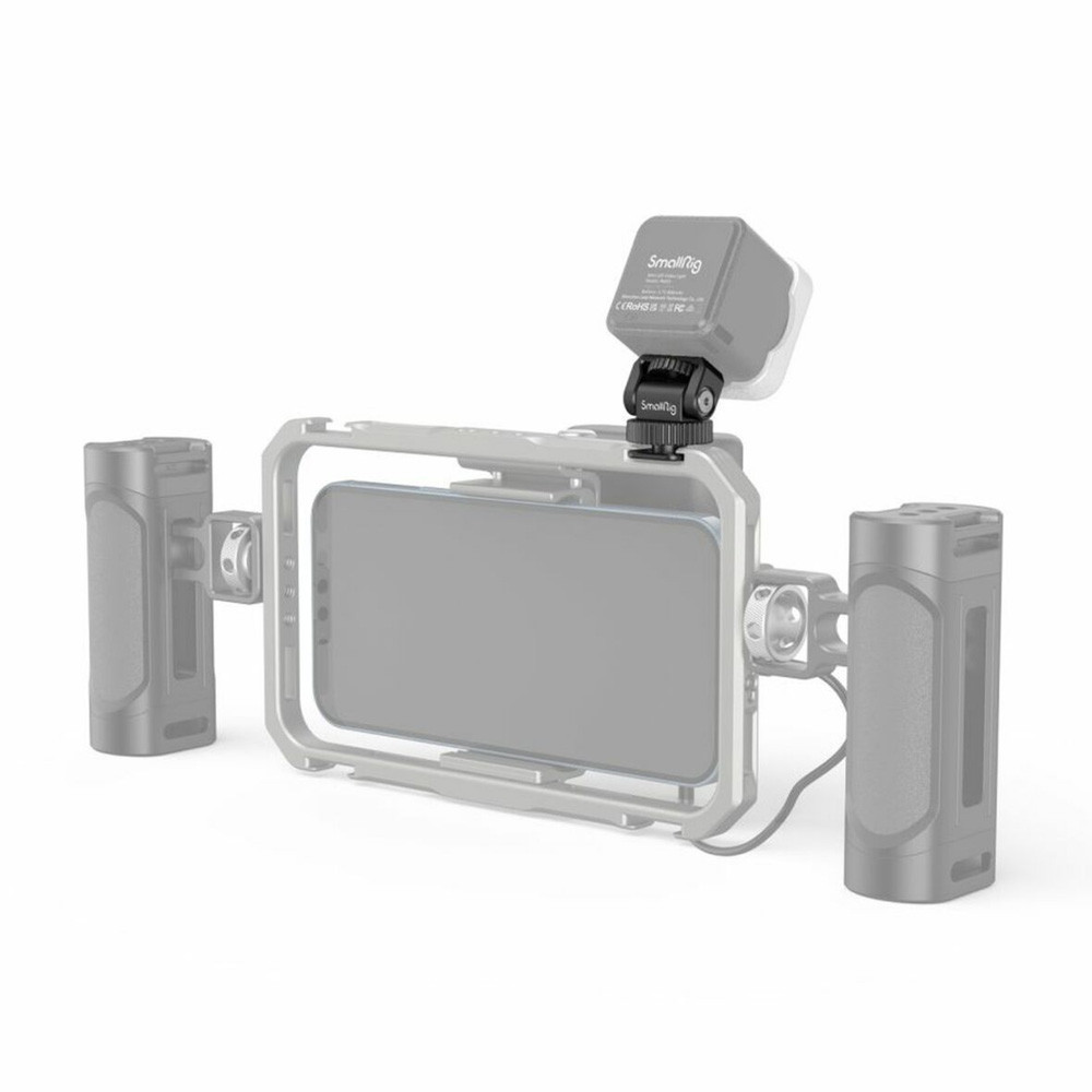 A SmallRig 3577 Mini vakupapucs adapter 1/4" menettel főként a kisméretű kiegészítők rögzítésére szolgál. A 138°-os döntés beállítás, valamint a csillapító szerkezetnek köszönhetően bármilyen helyzetben megállást, precíz világítást biztosítva. Csatlakoztatható a kamera tetején lévő vakupapucsba vagy a vage vagy markolat vakupapucs adapterébe. A kiegészítők egy 1/4" csavarlyukon keresztül csatlakoztathatók. A tetején karcolásgátló párnák találhatók, amelyek növelik a reteszelési súrlódást és megvédik a készüléket a karcolásoktól. A mindössze 20 g súlyú adapter kompakt és hordozható.