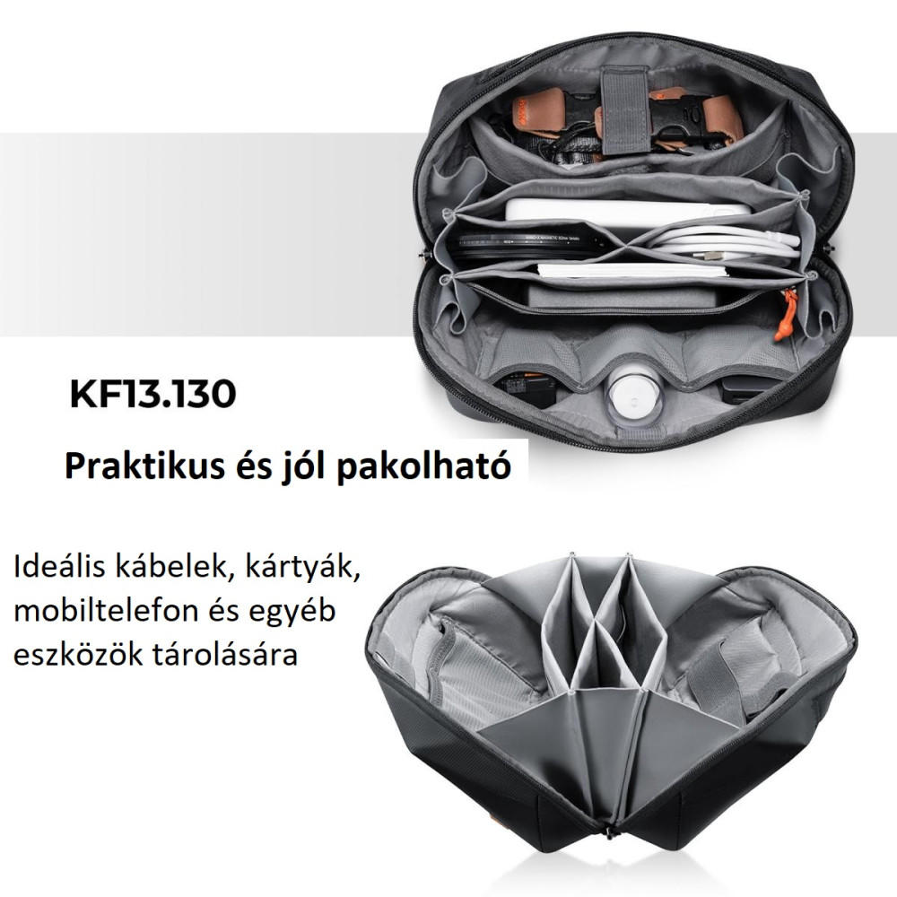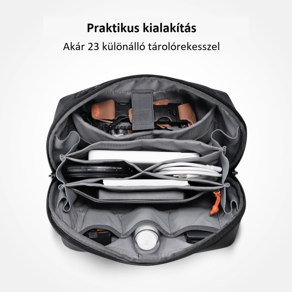 Az optimális belső térrel és akár 23 tároló hellyel rendelkező rendszerező táska, mely ideális mobiltelefonok, töltők, adatkábelek, mobil töltők, USB flash meghajtók, egerek, autókulcsok, bankkártyák rendkívül rendezett tárolására.