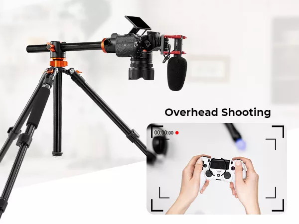 Sokoldalú alumínium kameraállvány vízszintes középoszloppal, amely lehetővé teszi overhead és kreatív felvételek készítését. Átalakítható monopoddá, így rugalmasan használható különböző helyzetekben. Stabil, nagy teherbírású kialakítása ideális fotózáshoz és videózáshoz.