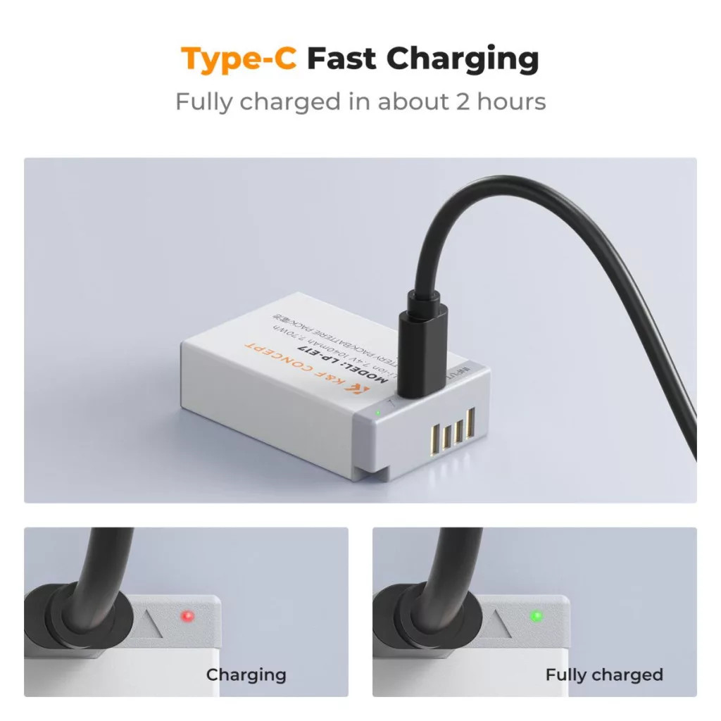 K&F Concept LP-E17 akkumulátor 1040mAh, USB-C csatlakozóval, 2db (KF-28-0049S1)
