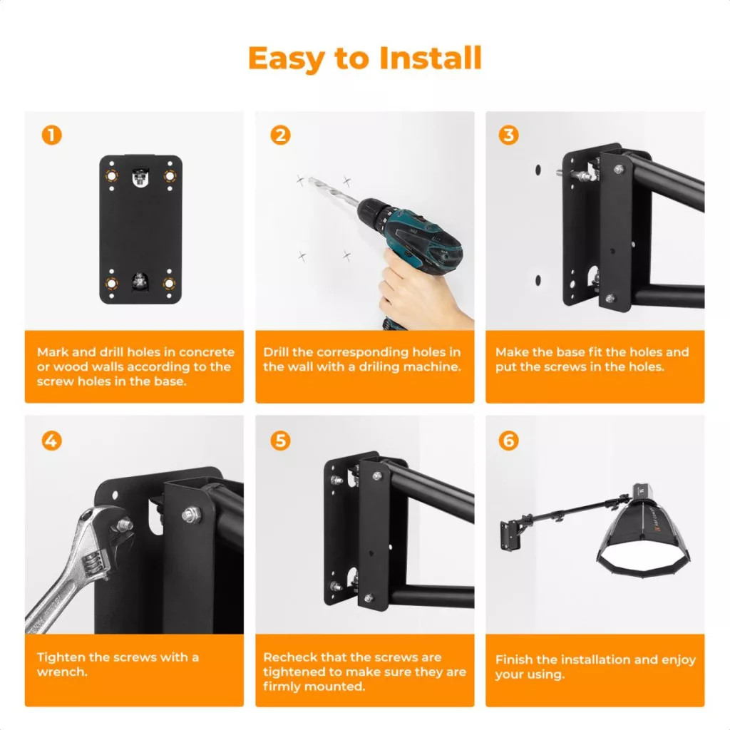 A K&F Concept fali boom kar lehetővé teszi a professzionális világítás kialakítását stabil és biztonságos módon. A helytakarékos kialakítás és az állítható kar maximális rugalmasságot biztosít, miközben a masszív szerkezet garantálja a megbízható használatot. Ideális választás minden olyan stúdió számára, ahol fontos a rendezettség és a hatékony munkavégzés.