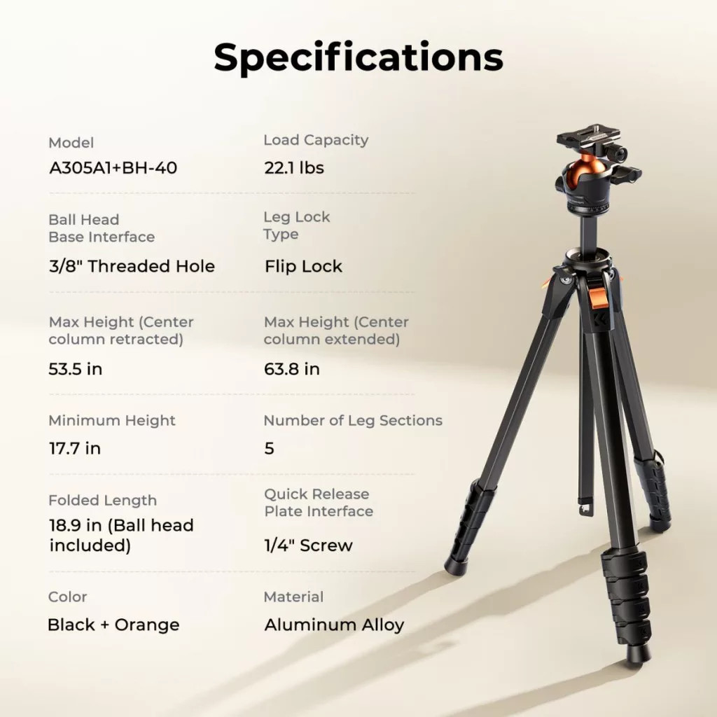 A K&F Concept 160cm tripod egy kompakt, könnyű és mégis stabil állvány, amely ideális választás utazáshoz, kültéri fotózáshoz és mindennapi használatra. Az alumínium szerkezet megfelelő egyensúlyt biztosít a tartósság és a hordozhatóság között, így könnyen magával viheti bárhová. Az Arca kompatibilis gömbfej gyors és precíz beállítást tesz lehetővé, így a kívánt kompozíció pillanatok alatt beállítható.