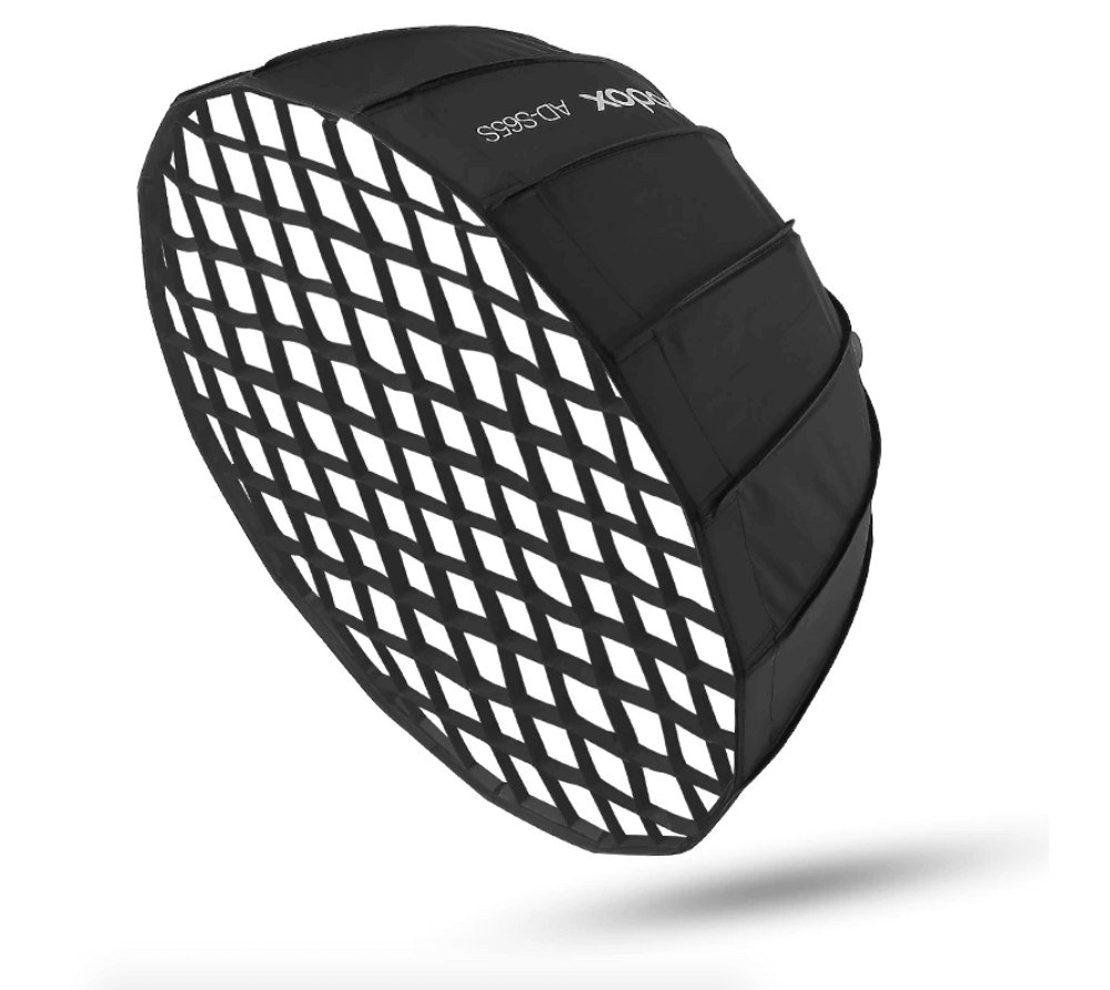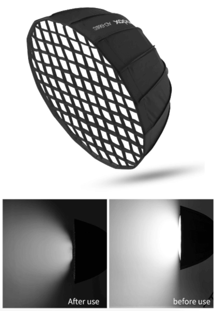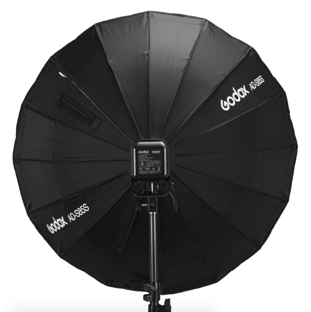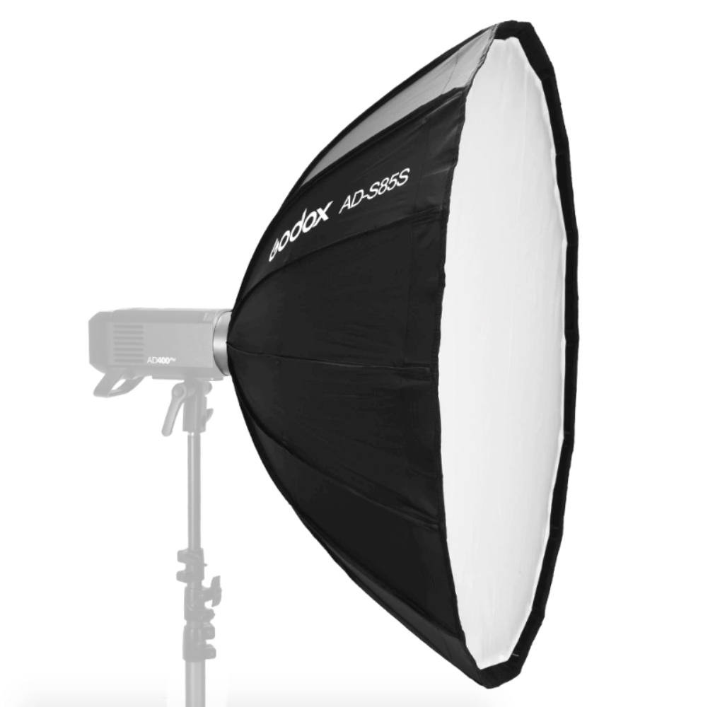 A Godox AD-S85S deep ernyőként nyitható softbox, kifejezetten az AD400Pro-hoz kialakított, kis helyigényű fényformáló szett. A gyűrű átmérője is kisebb mint a hagyományos boxoknak.