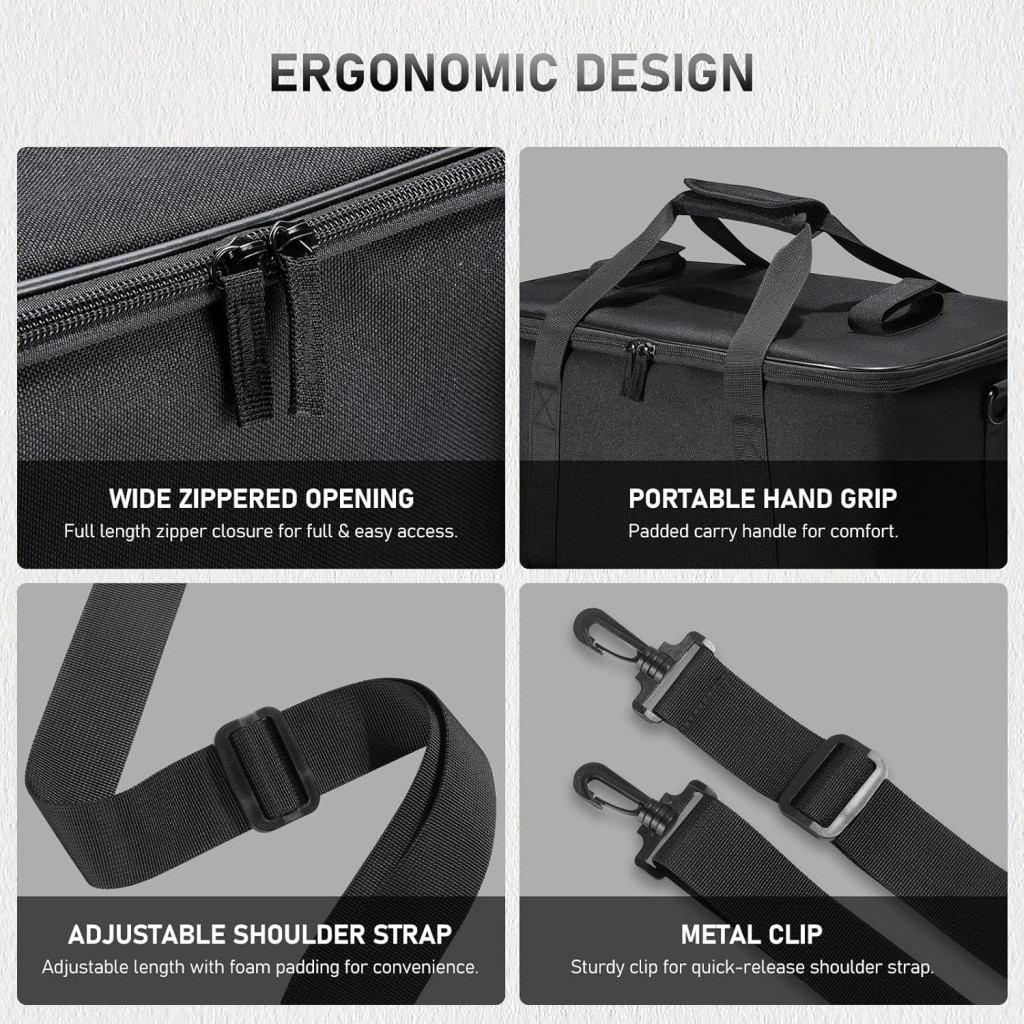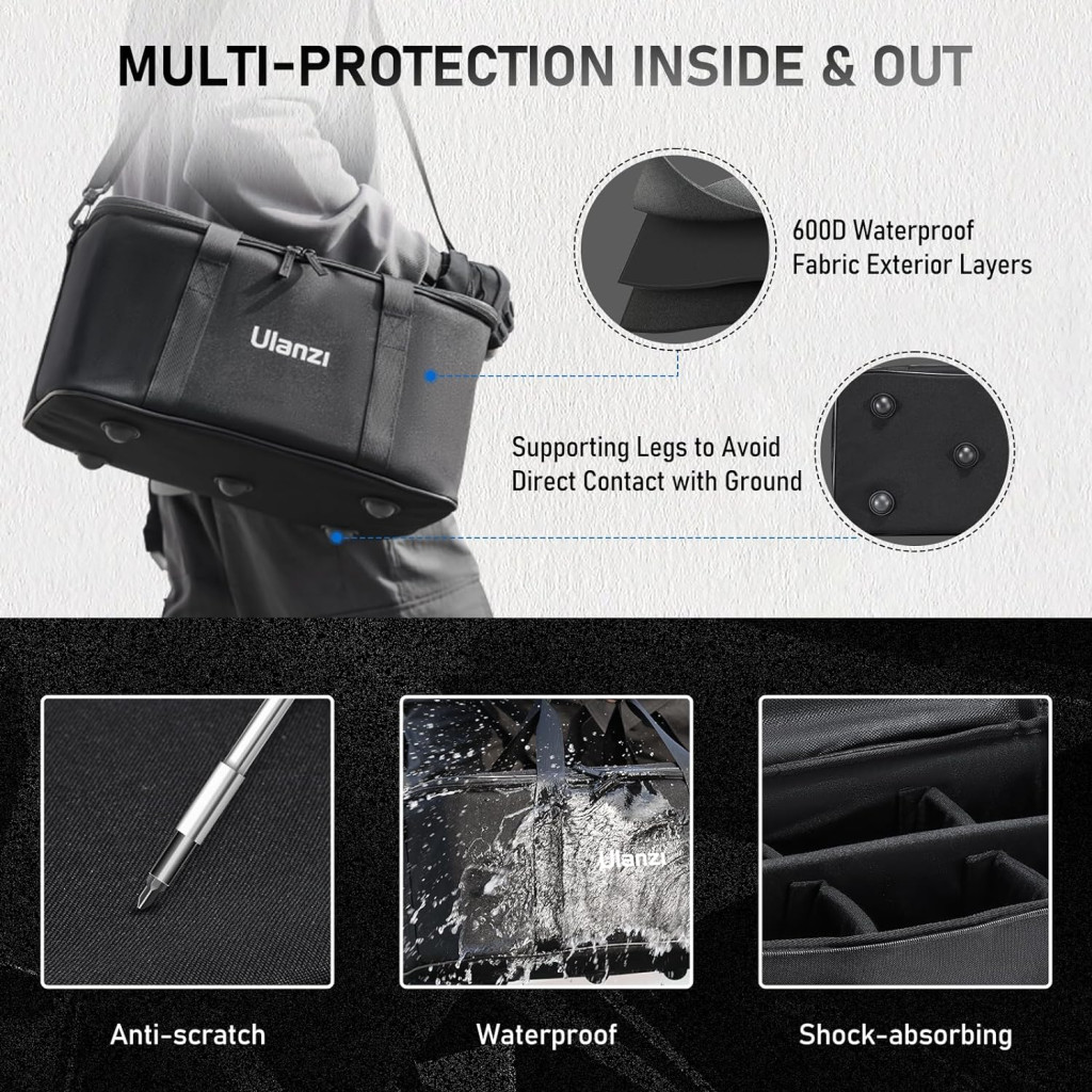 Az Ulanzi OM-01 Softbox hordtáska egy tartós és praktikus megoldás, amely biztosítja a softboxok és egyéb világítási eszközök biztonságos tárolását és szállítását. A táska erős és ellenálló anyagból készült, amely megvédi a felszerelést a sérülésektől, miközben könnyű és kényelmes viseletet biztosít.