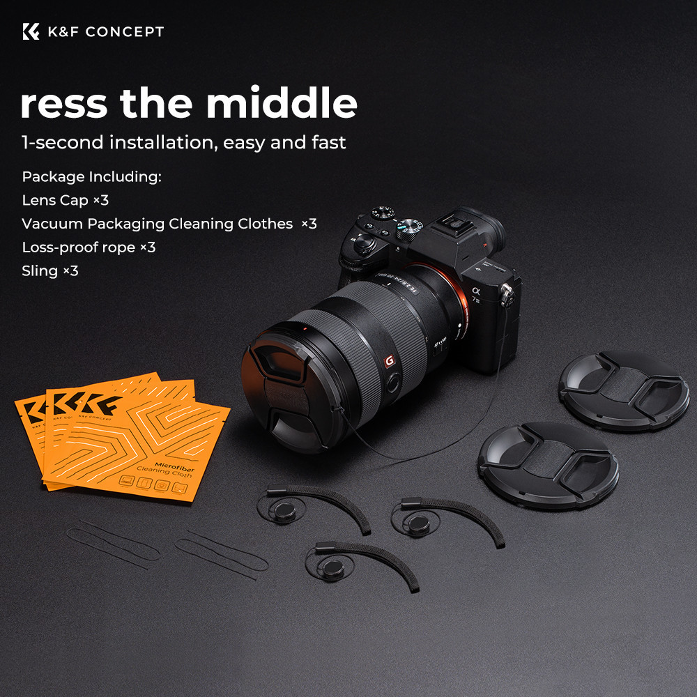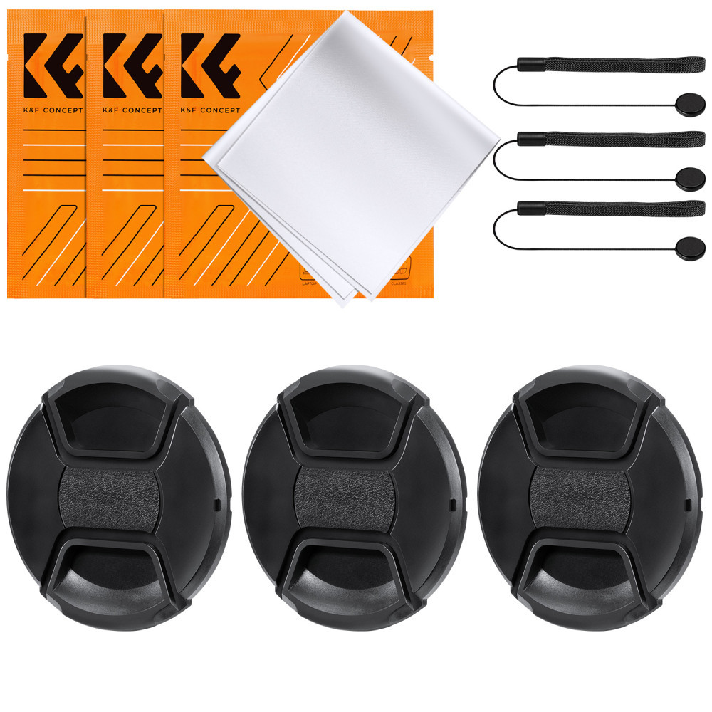 K&F Concept 3db objektívvédő sapka zsinórral + 3db törlőkendő, 49mm (KF-1990)