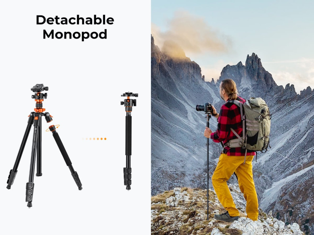Az állvány 50 cm és 196 cm között állítható. A levehető középoszlop és láb külön monopodként is használható, amely akár 215 cm-ig is kihúzható, így rugalmas megoldást nyújt különböző helyzetekhez.