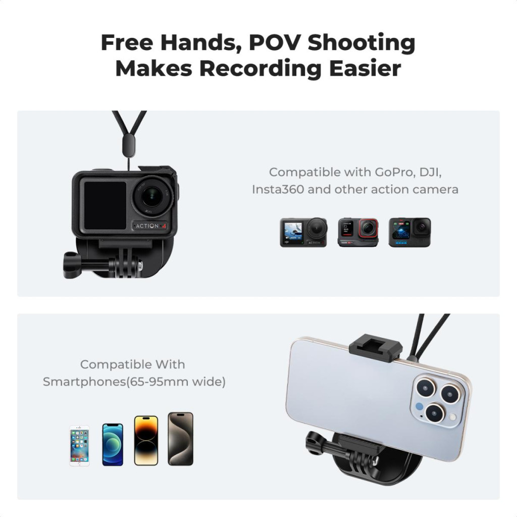 A K&F Concept mágneses nyaktartó praktikus megoldást kínál azoknak, akik kényelmesen, kézhasználat nélkül szeretnének videót rögzíteni telefonjukkal vagy akciókamerájukkal. A MagSafe-kompatibilis mágneses felület és a cserélhető adapterek sokoldalú használatot biztosítanak, miközben az állítható húzózsinór stabil és kényelmes viselést tesz lehetővé.