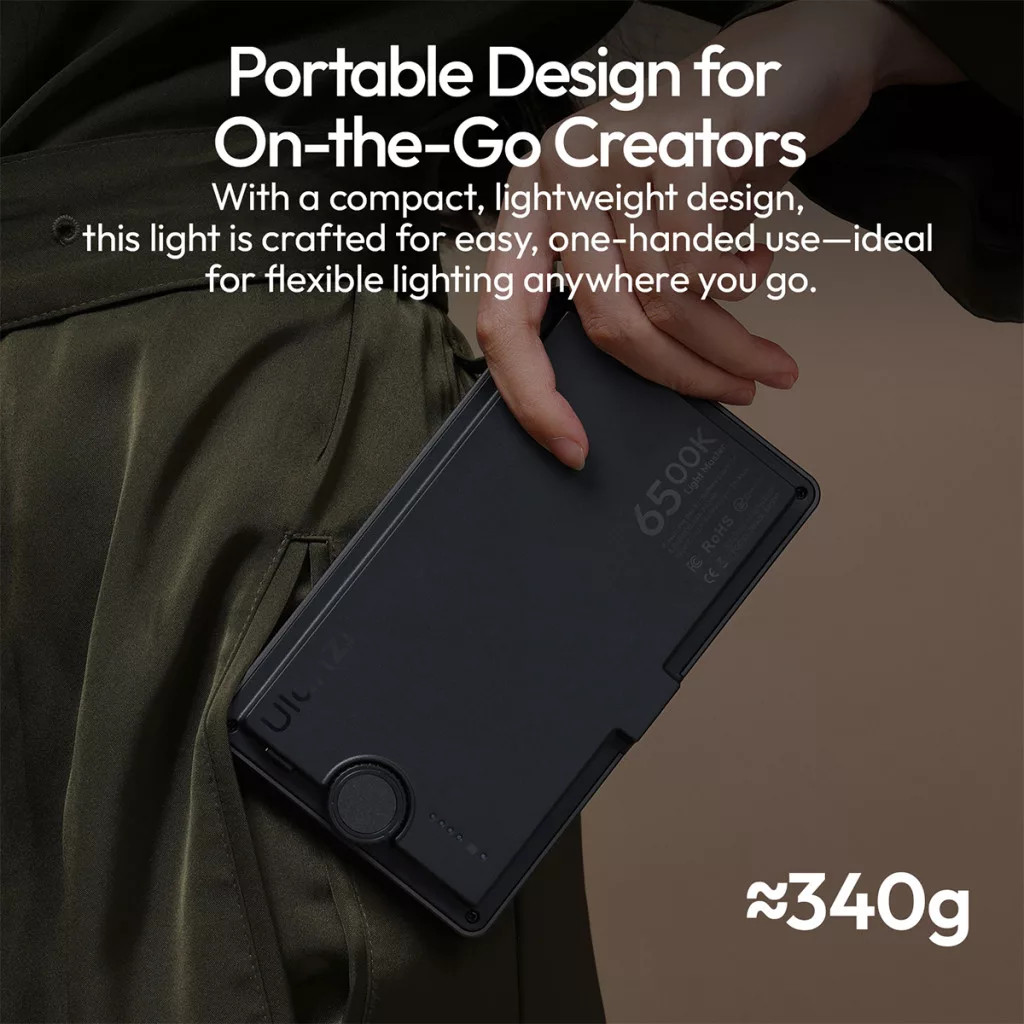 A Ulanzi K6500 egy sokoldalú, erőteljes LED-videólámpa, amely 10 watt teljesítményével elegendő fényt nyújt kisebb stúdiófelvételekhez vagy tartalomkészítéshez. A beépített 8000 mAh akkumulátor támogatja a vezeték nélküli üzemet, így rugalmasan használhatod helyhez kötött táp nélkül is. A 2900-6500 K tartomány lehetővé teszi a meleg és hideg fény beállítását, míg a Bluetooth vezérlés révén mobilról vagy kreatív alkalmazásokkal állíthatod be a fényerőt és színhőmérsékletet. A mágneses hátlap egyszerű rögzítést tesz lehetővé fém felületeken, konzolokon vagy mágneses tartókon keresztül.
